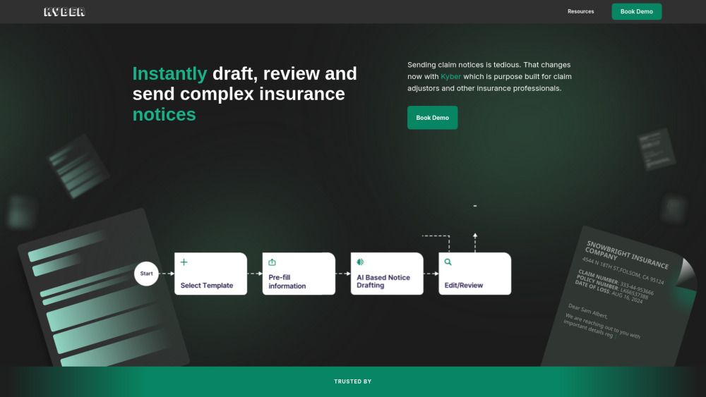 Kyber is an AI-powered correspondence automation tool designed specifically for insurance claims teams, streamlining the generation of accurate notices while ensuring compliance with jurisdictional rules. Its unique features include a built-in audit trail for full compliance visibility and seamless integration with existing claims systems, allowing teams to maintain control without disrupting current workflows. With Kyber, organizations can deliver consistent communications at scale, even during